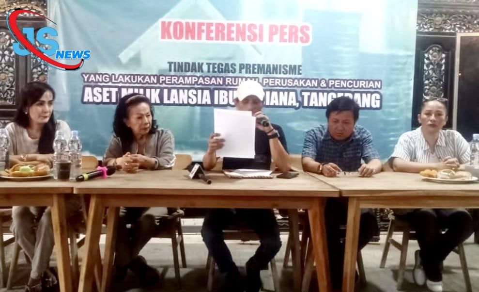 TANGERANG |JSNews- Forum Wartawan Jaya (FWJ) Indonesia bongkar dugaan motif pelaku perampasan rumah, perusakan dan pencurian dengan modus eksekusi sepihak oleh SEH alias E cs terhadap aset milik wanita lansia umur 72 tahun yang bernama Lusiana BN Candi Kencana tanpa didasari proses hukum yang jelas, sehingga mengakibatkan kerugian korban (pemilik) sebesar 2 miliar rupiah. Hal itu dikatakan ketua umum FWJ Indonesia, Mustofa Hadi Karya atau yang biasa disapa Opan saat menggelar konferensi pers nya di Tangerang, Kamis (8/5/2025).